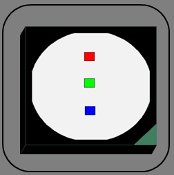 芯片一字排,左右發光對稱。芯片從上到下依次為紅色、綠色、藍色,RGB的順序能夠更好地混光,不會產生顏色失真。芯片一字排列,左右發光角一致,顏色一致。